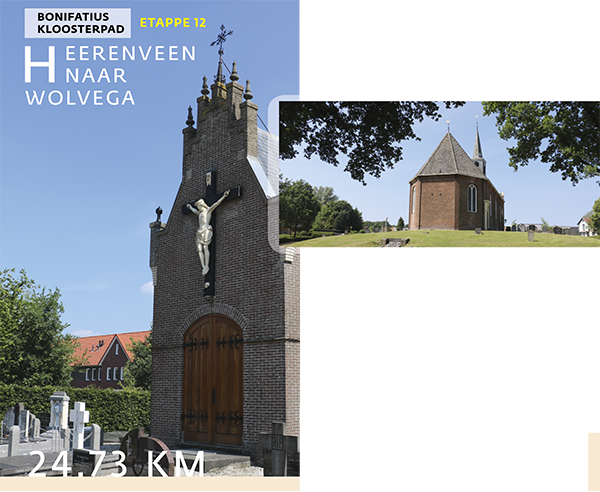 Bij Ter Idzard loop ik een zandrug op tussen Tsjonger en Lende. Van ver al wuift de windvaan van de kerk me toe: het welkom van opnieuw een Bonifatiuskerk op dit pad. De kerk is halverwege de vijftiende eeuw gebouwd, ook na de Reformatie bleef een deel van de bevolking de Roomse kerk trouw. Zij beleden hun geloof in het diepste geheim. De aanzienlijke familie Terwisscha bood onderdak aan priesters die behoorden tot de orde van de Franciscanen. Zij bedienden de schuilkerk van de parochie en deden aan zielzorg. Omdat de Terwisga’s goede banden hadden met de Oranjes, mochten zij in het bos van Oldeholtpade een kerk zonder pastorie oprichten. In de negentiende eeuw gaf de bisschop van Utrecht opdracht tot de bouw van een nieuwe kerk in Wolvega die aan de heilige Franciscus werd gewijd. Mijn laatste bestemming is de kapel boven de grafkelder van Tinco Martinus Lycklama à Nijeholt en zijn vrouw Juliana thoe Schwartsenberg en Hohenlansberg op het kerkhof bij de katholieke kerk in de hoofdplaats van Weststellingwerf. De kapel is een replica van een houten versie die de jonkheer had gekocht op de wereldtentoonstelling in Parijs in 1878. Tinco snakte naar nieuwe ervaringen en avontuur. Op 27-jarige leeftijd trok hij te voet en te paard door het Midden-Oosten op zoek naar sporen van de oude beschavingen. Na een reis van drie jaar kwam hij terug in Beetsterzwaag en richtte er een Oriëntaals museum in. Tijdens de reis, mede onder invloed van alle indrukken, maakte Tinco op 2 juni 1868 de overstap van het Nederlands-Hervormde geloof, dat zijn familie aanhing, naar de Rooms-Katholieke kerk. In de Heilige Grafkerk in Jeruzalem bekeerde hij zich. ‘Gedreven door overweging en overtuiging aanvaardde vader Antonius mijn geloofsbelijdenis,' noteert hij in zijn dagboek. In zijn reisverslag IV beschrijft de pelgrim Tinco hoe zijn speurtocht naar de (geloofs-)geschiedenis en zijn lange reizen in de Oriënt hem op het spoor van nieuwe inzichten brachten. Tinco Martinus Franciscus Maria Lycklama à Nijeholt en missionaris Bonifatius reiken elkaar de hand. (bron: Tinco's blijvende sporen in Wolvega, een uitgave van de HH. Petrus en Paulusparochie, in samenwerking met Stichting Historisch Beetsterzwaag en Tinco Mienskipproject Leeuwarden Friesland Culturele Hoofdstad 2018.) Later verhuisde hij naar Cannes, maar bij zijn dood wilde hij samen met zijn geliefde op het kerkhof in Wolvega liggen. Zijn rustplaats is een neogotische kapel, een knipoog naar en ode aan een rijk Rooms verleden. Het interieur bevat authentieke elementen uit de houten kapel die hij eerder in Parijs had aangeschaft. Gedreven door nieuwsgierigheid naar de oude klassieken en de onder stof en woestijnzand begraven beschavingen, rok deze reiziger de wereld rond. Een zoeker, dromer en schatgraver. Een pelgrim. Een mooi eindbesluit of startpunt van de Bonifatius Kloosterpad pelgrimage.