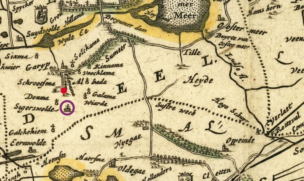 Sigerswâld leek hun een goede plek om een nieuw bestaan op te bouwen. Worp: ‘Tegen de muuren maakten de gemeide zusters een kerkje van sparren en riet, daar ze dan voor het eerst onder dak waren. Verscheidene vroome luiden, door ‘t goede leeven en de strengheid van die Zusters getroffen, beweezen haar hunne mildadigheit, zoodat de Zusters de handen nu ruimer hebbende, de kerk begosten schoon te maken en het dak op te timmeren. En nadat ze toestemming van het gansche land en die van de Utrechtse Bisscop David van Bourgonje bekomen hadden, hebben ze een klooster begonnen te bouwen.’ In 1547 bestond het klooster uit een kerk, een ‘bouwhuys’ en een ‘spinhuys’. In 1581 ging op last van de Friese stadhouder, Graaf de Merode, de brand in de gebouwen om te voorkomen dat de Spanjaarden ze als uitvalsbasis zouden gebruiken voor plundertochten. De laatste gewezen non die een toelage kreeg van de Provinciale Staten overleed in 1637. Sigerswâld lag net als Garyp op een zandkop in het veen. Een bewoner die net op de voor zijn huis geparkeerde trekker wil stappen, wijst naar de boerderij die achter zijn huis tegen de zandwinput aanligt. ‘Op de plek waar de jongveestal staat, komen nog wel eens botten aan het licht.’ Iets verderop passeer ik het Nonnepaed en de Zustervaart, namen die net als de Susterwei verderop bij De Tike herinneren aan de honderd jaar dat klooster Sinaï een stempel op de omgeving drukte. Over een boerenpad loop ik door de landerijen naar Oudega met de imposante uit de Twaalfde eeuw stammende Sint-Agathakerk. Door de Jan Durkspolder, een natuurgebied van It Fryske Gea, bereik ik Wide Ie en De Veenhoop. In het moerasgebied hoor ik rietzangers en in de graslanden kieviten en grutto’s, terwijl scherp afgetekend tegen het zwerk een kiekendief patrouilleert. Een koekoek zingt zijn eigen echo.